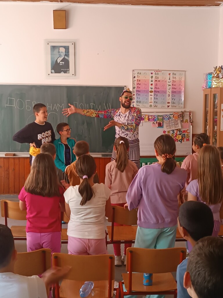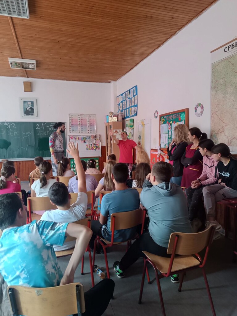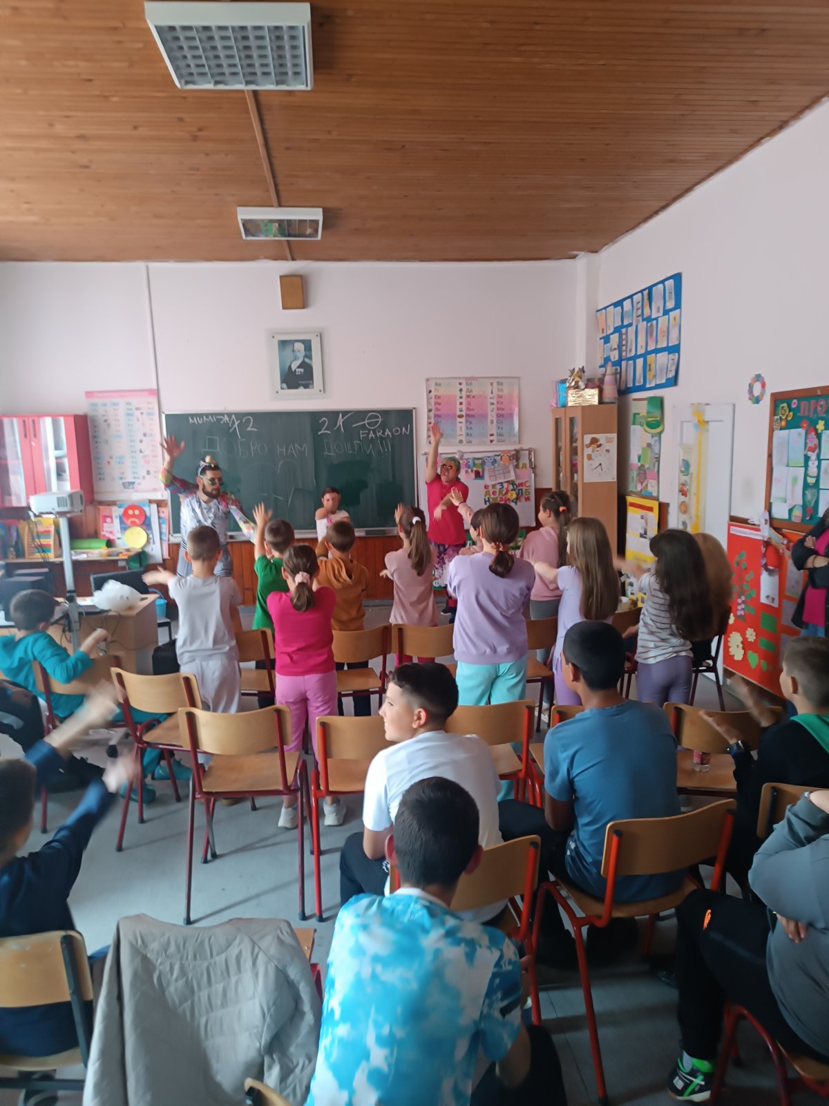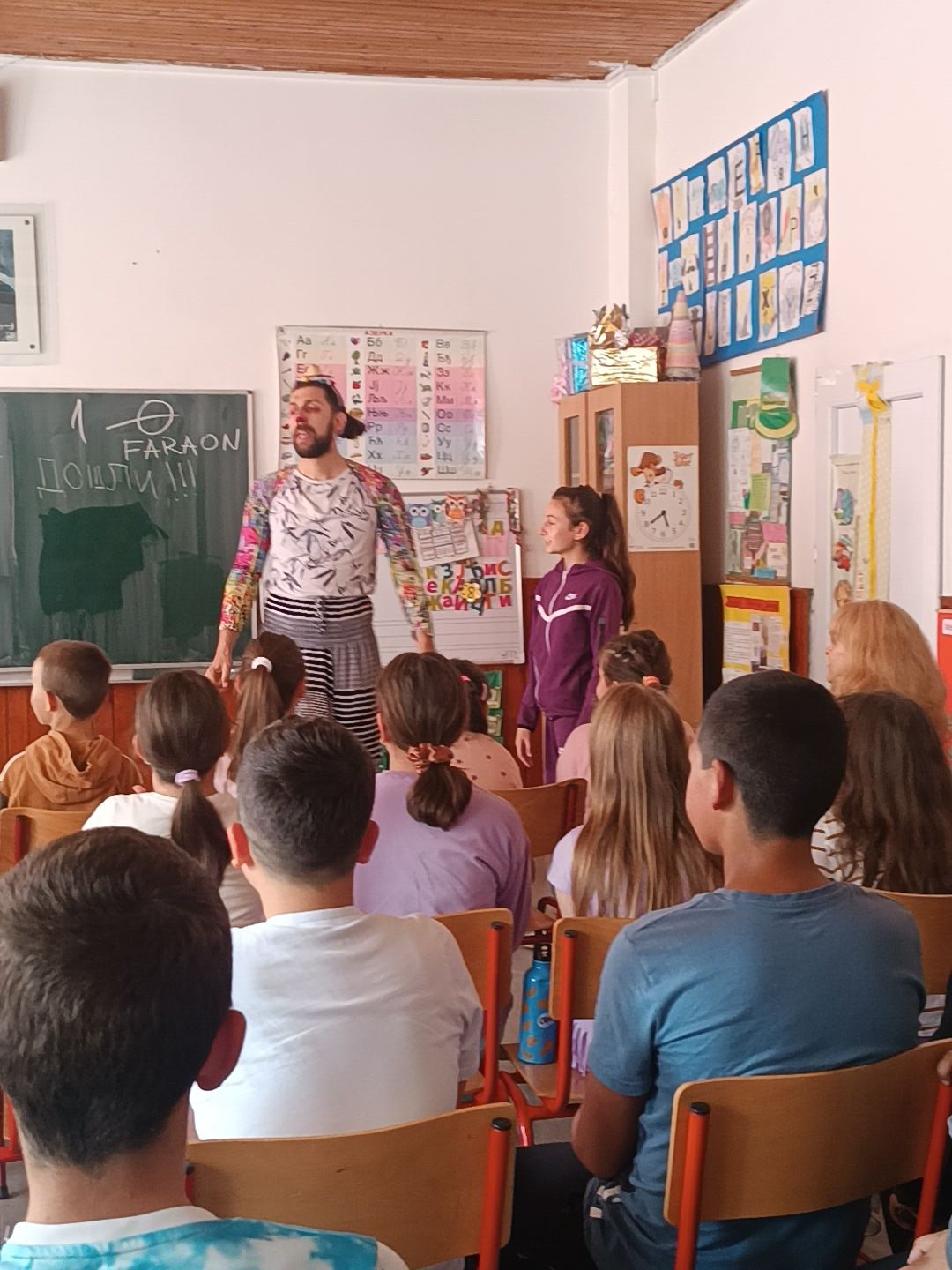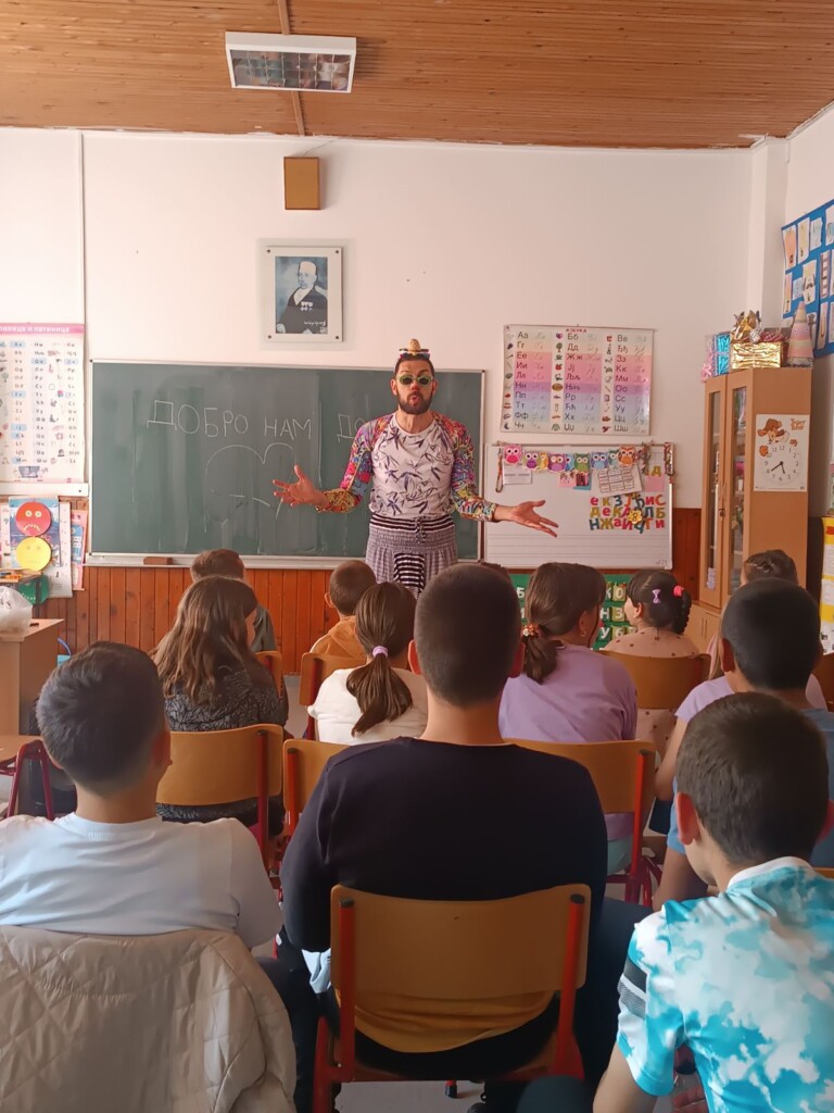 Има ли шта пријатније од ненаданог дара?! Библиотека у Гучи даривала је нашу школу представом „Весели кловнови”. Глумци позоришне трупе из Ниша, Александар Стевановић и Младен Милојковић, развеселили су својим извођењем и мале и велике ђаке подједнако. Мајсторски су их анимирали, навели да се покрену, разиграју тело и глас, ослободе укочености и стидљивости, мудрују, увиђају добро и лоше, другарско и себично, да добро премере и одаберу праву страну. По свом нахођењу наденули су име шареним кловновима и драговољно се определили срцем, и само срцем, „Мумији‘’ или „Фараону’’. Склековали, степовали, реповали, српску жицу што на коло кида развезали, цртали египатског слона на три, четири ноге, филозофирали о томе како је квар у овој представи љубомора и дефинисали је као „нешто што неко жели… а други има”. Како верна спознаја!!!