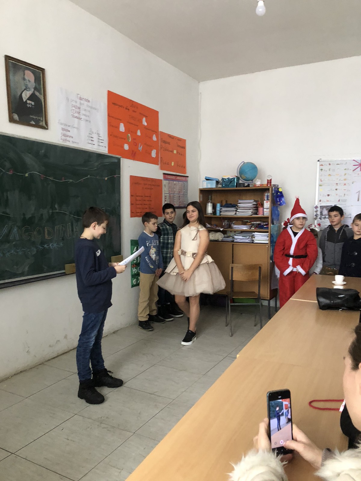 Школарци су уз подршку предшколаца извели новогодишњу представу и рецитовали здравице. Учионицом се ширио смех и аплауз. На лицима деце блистао је понос и срећа.