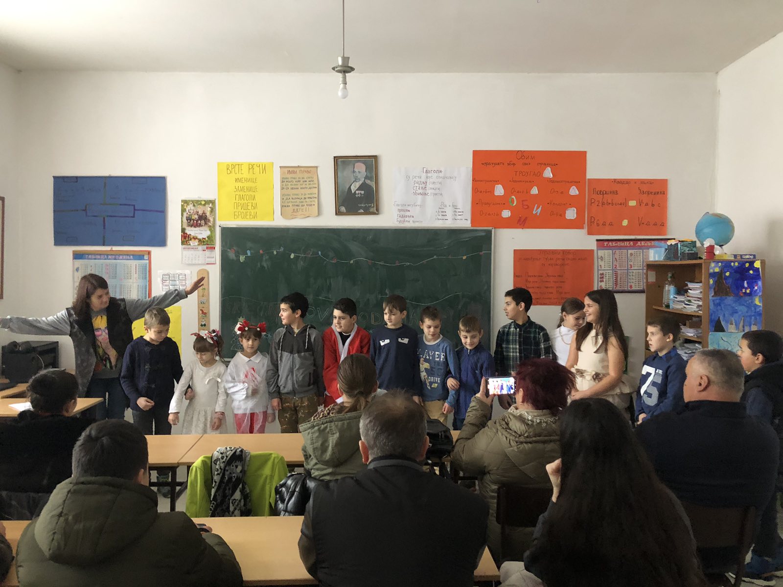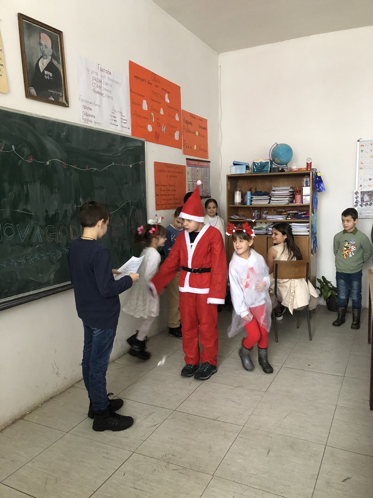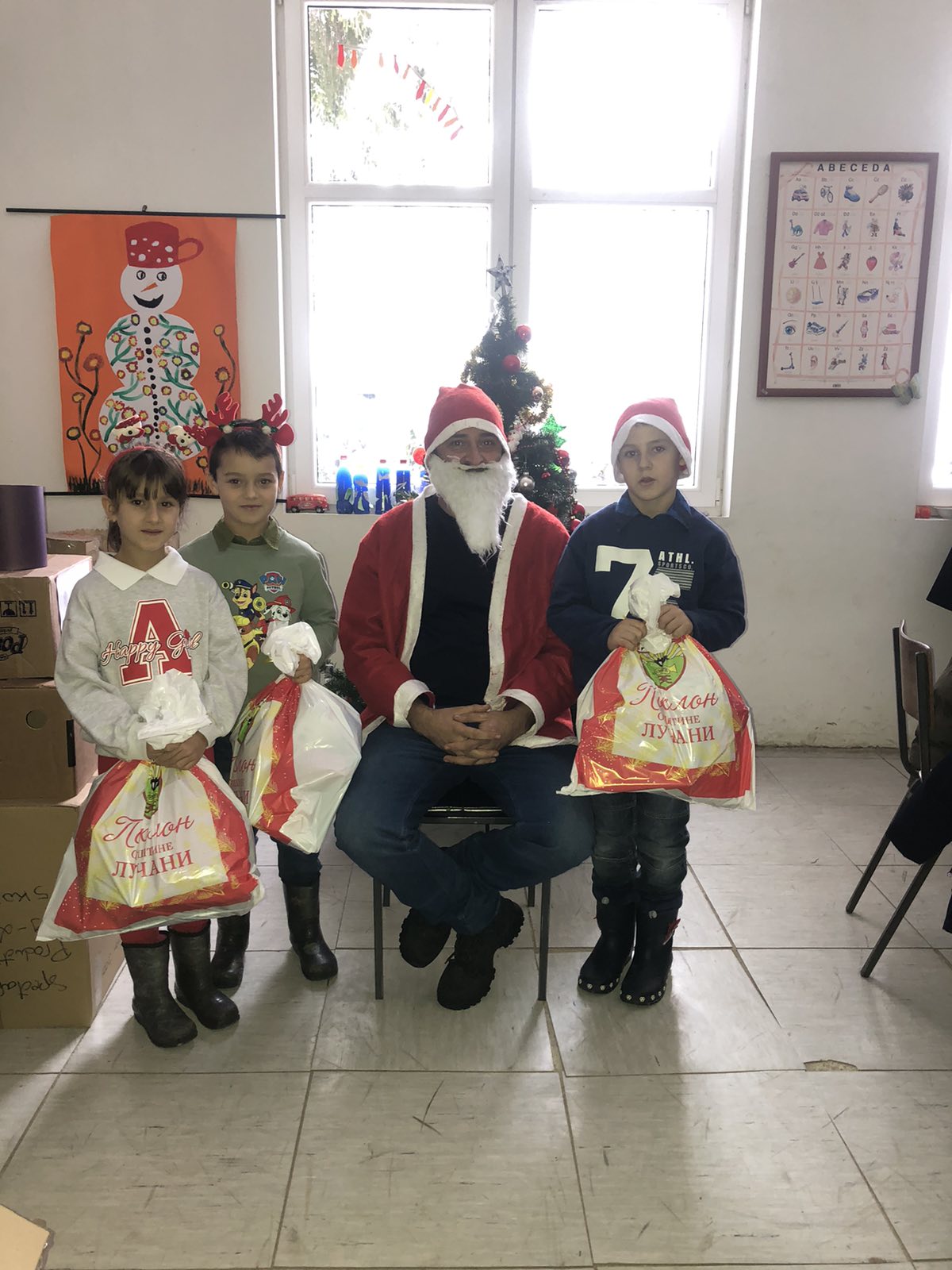Након разговра са родитељима и поделе књижица, уследило је велико одушевљење деце када се на вратима појавио Деда Мраз који је донео новогодишње пакетиће захваљујући општини Лучани, за ђаке и малишане села. Поред окићене јелке и Деда Мраза, низале су се фотографије са нашим ђацима.